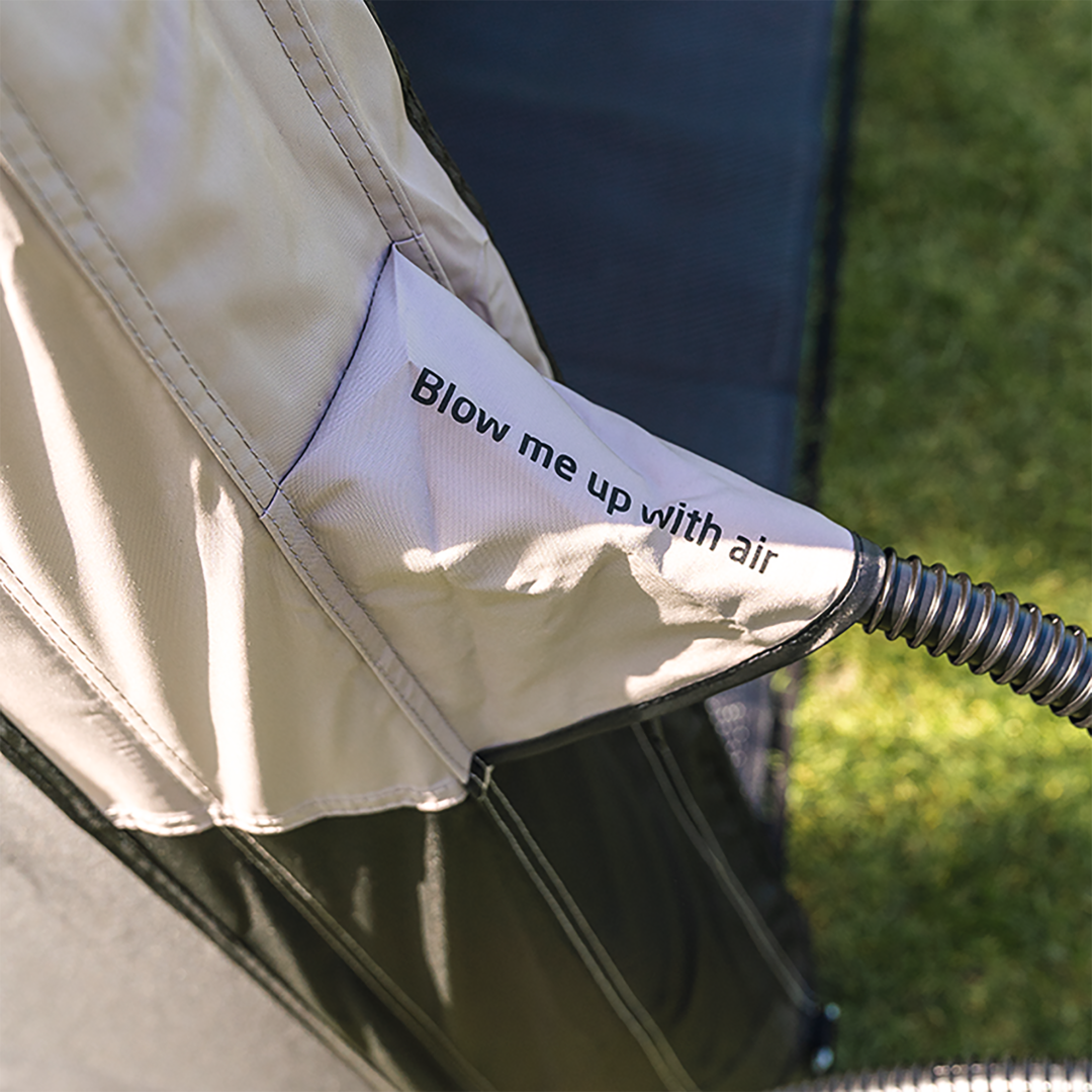 Das aufblasbare Sonnendach besteht aus beschichtetem Polyester.