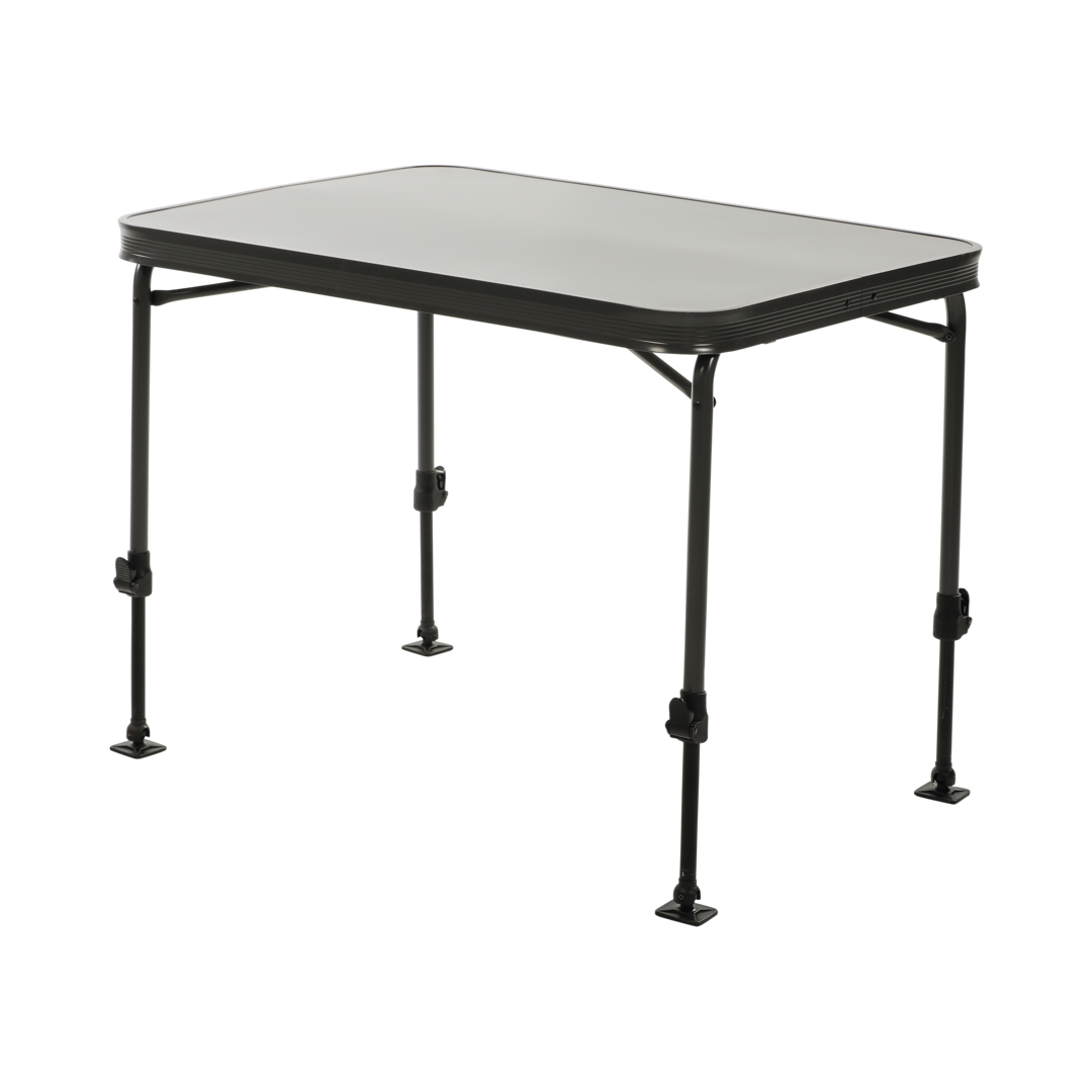 Der Alba-Tisch besteht aus einem Aluminiumrahmen mit einer Tischplatte aus Kunststoff, ist daher sehr leicht und lässt sich einfach überallhin mitnehmen. Die Kunststoff-Tischplatte ist kratzfest und hitzebeständig bis 100 °C. Einfache Höhenverstellung durch Schiebesystem. Farbe Grey.