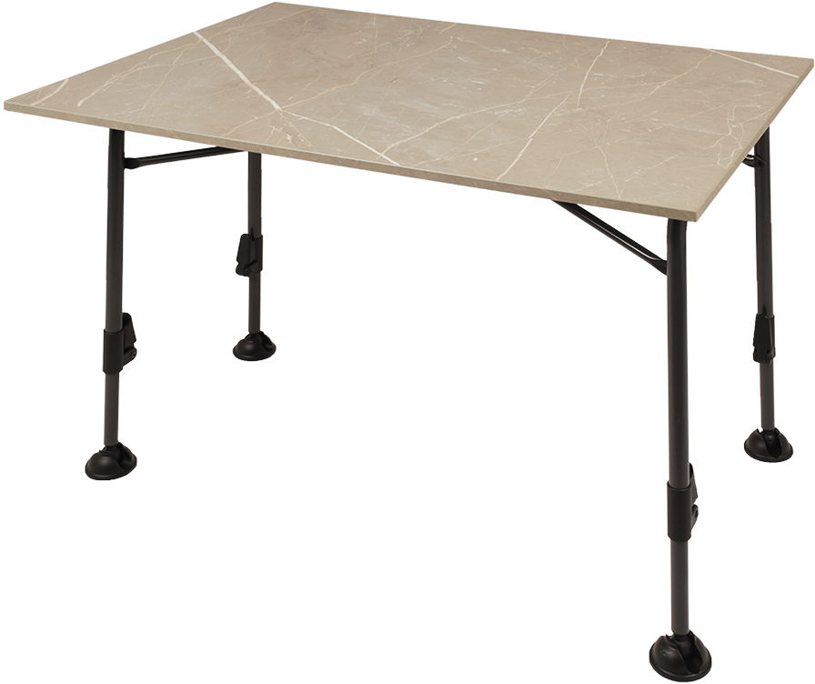 Kompakter und wetterfester Campingtisch mit stabiler Tischplatte aus Exteriolit und leichtem Stahlgestell. Alle Beine sind stufenlos von 63 – 94 cm teleskopierbar. Die Tischplatte ist leicht zu reinigen, wetterfest, UV- und hitze-beständig (bis zu 160 °C). Geeignet für zwei bis vier Personen.