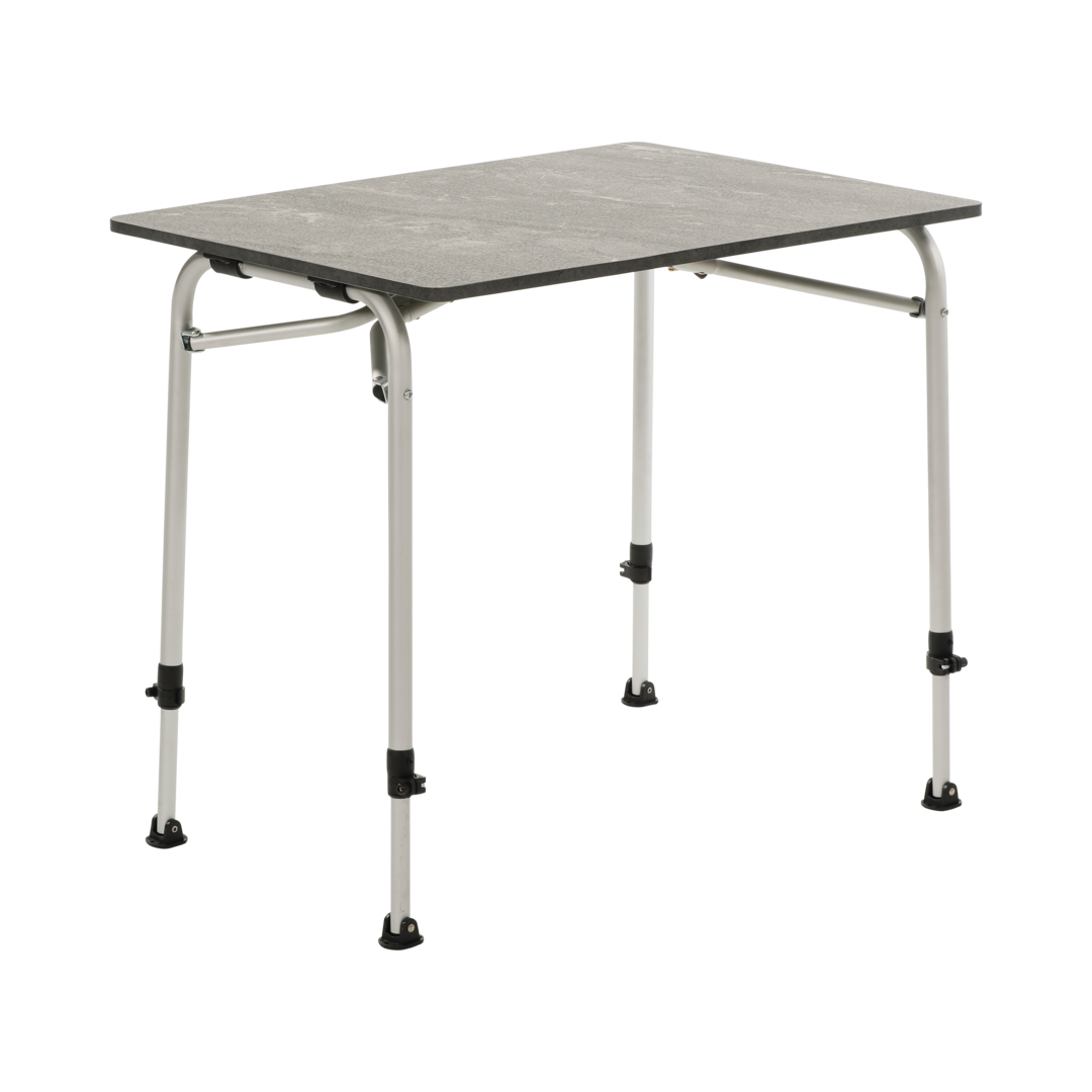 Der kompakte Tisch hat ein Klappgestell, das per Knopfdruck bedient werden kann. Belastbarkeit 30 kg.