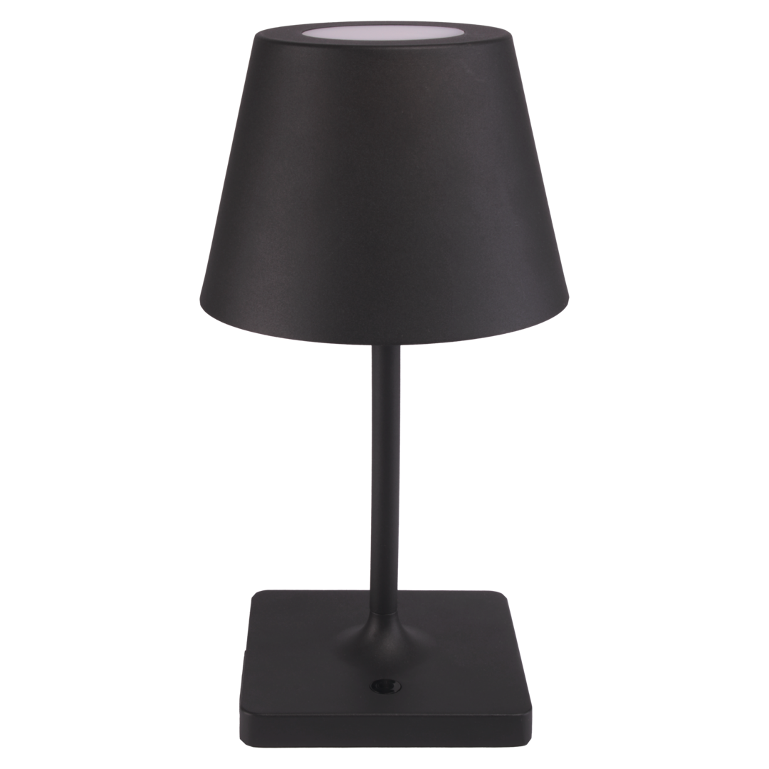 Lichtfarbe 2.700 K, Lichtstrom 130 lm, dimmbar, 1.800 mAh Li-Ion-Akku, Brenndauer max. 12 h, Höhe 28,5 cm.
