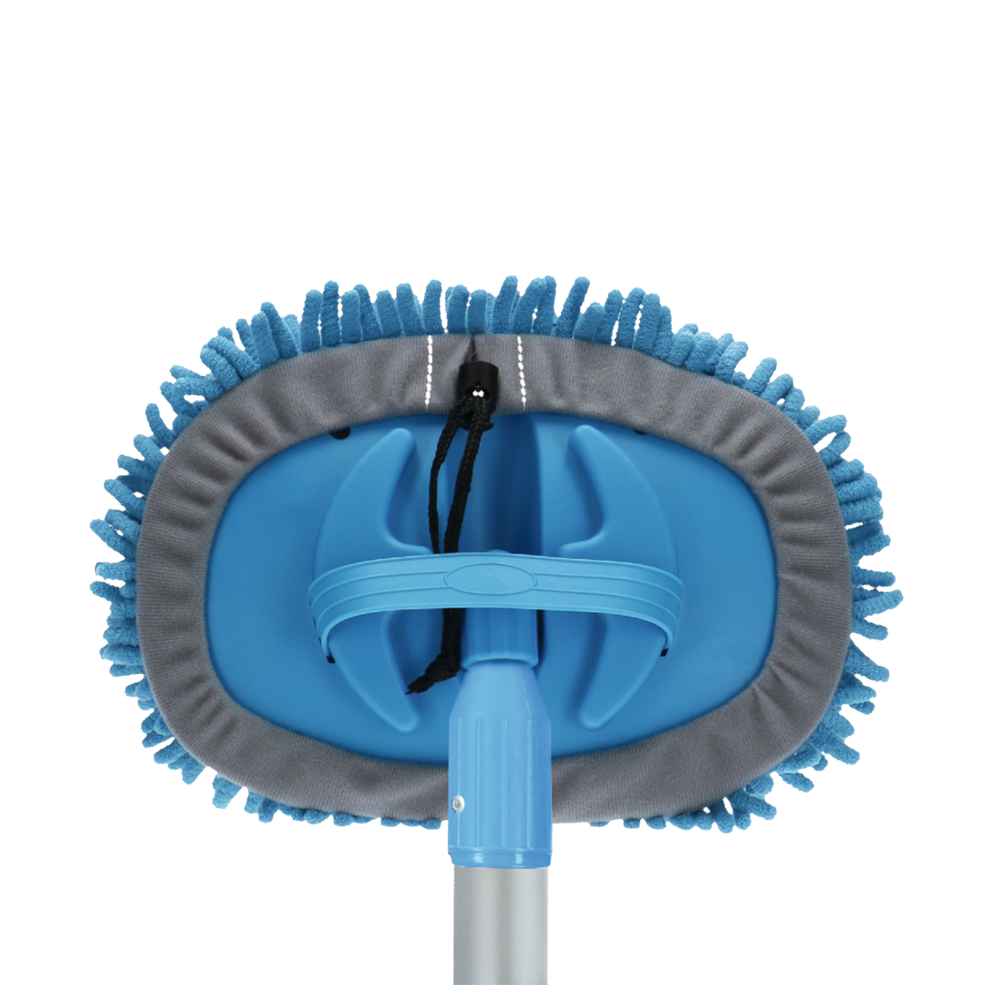 Microfaser Waschbürste zur kratzfreien Reinigung. Mit Gardena-Wasseranschluss aus Kunststoff und Alu-Teleskopstab (Länge 135 – 245 cm, ø 30 mm).