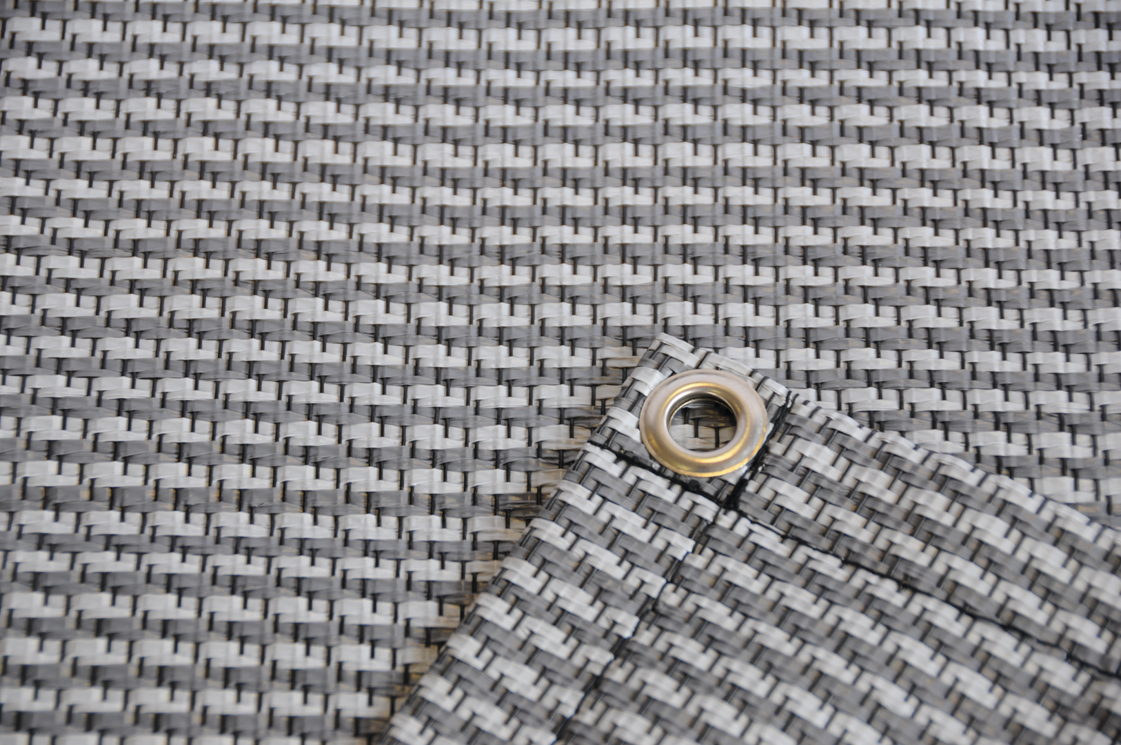 Hochwertiges Material aus einer mit PVC verstärkten Polyesterfaser (100 % Polyvinylchlorid). Gewicht 480 g/m².
