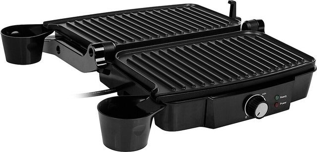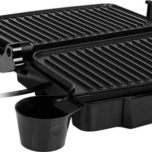 Dieser Kontaktgrill ist ideal für schnelle und gesunde Zubereitung von Fleisch, Fisch und Paninis. Er kann als Kontaktgrill, aber auch als Tischgrill verwendet werden. In den Auffangschalen wird überschüssiges Fett gesammelt.