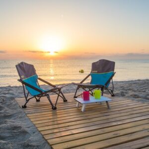 Er bietet genau den richtigen Komfort, ohne zu schwer oder zu unhandlich zu sein, um ihn bequem tragen zu können. Ausgestattet mit einem robusten Stahlrahmen und einem festen, bequemen Sitz, ist er wirklich für jeden geeignet. Die extra großen Füße schützen vor dem Einsinken, auch in besonders losem Sand. Einfach hinsetzen, relaxen und träumen.