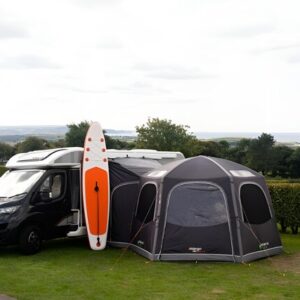Die beliebte Vango AirHub Hexaway Markise ist ein perfekter Ort für geselliges Beisammensein und schafft eine geräumige, wohnzimmerähnliche Erweiterung für Ihr Fahrzeug. Das sechseckige Design sorgt dafür, dass Sie den gesamten Raum optimal nutzen können, wenn Sie Zeit mit Familie und Freunden verbringen. Das aus recycelten Materialien hergestellte Sentinel ECO Pro-Gewebe eignet sich perfekt für Touren mit Ihrem Fahrzeug, und das einfache Aufblassystem lässt sich schnell und einfach auf- und abbauen. Der Verbindungstunnel kann leicht weggerollt werden, wenn Sie einen Tag lang auf Erkundungstour sind, und verfügt über 2 seitliche Eingangstüren für einen einfachen Zugang.