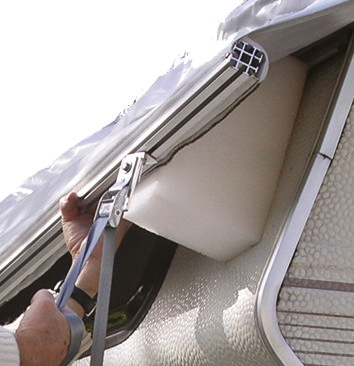 Für den Auf- und Abbau braucht es lediglich eine Leiter, keine Werkzeuge. Es sind keine Bohrungen oder ähnliches notwendig. Der Aufbau wird nicht beschädigt dank Auflage auf elastischen, 4 cm breiten Gurten. Die Spanngurten werden an geeigneten Stellen des Unterbaus eingehängt. Die seitliche Verspannung erfolgt in einem Stück unter dem Fahrzeug hindurch. Klimaanlage, Antenne oder Reling und Leiter sind keine Hindernisse. Der einfache Auf- und Abbau motiviert auch zur Anwendung über kürzere Standzeiten.