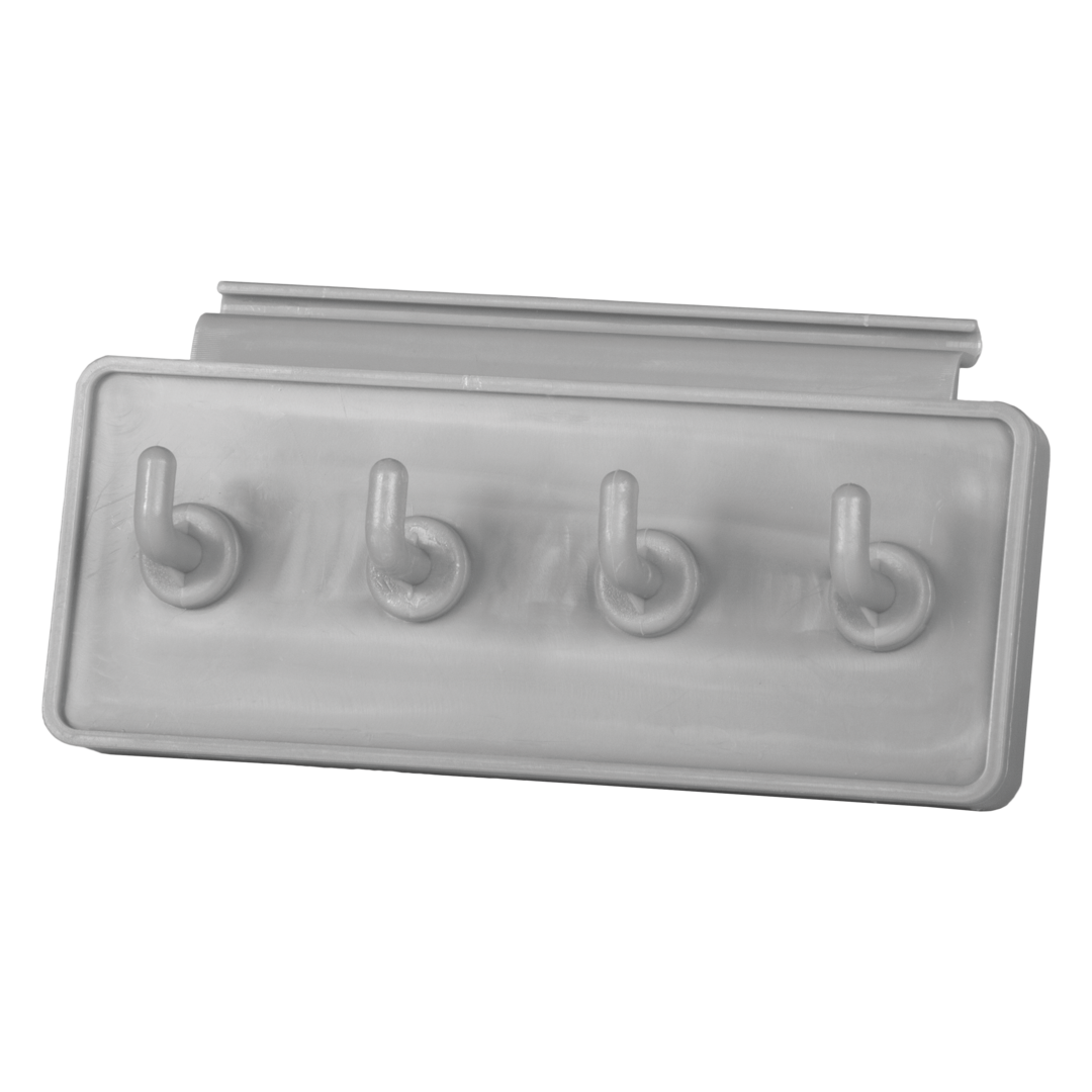 Die Kunststoff-Garderobe lässt sich einfach in die Reling des Wohnwagens einschieben.