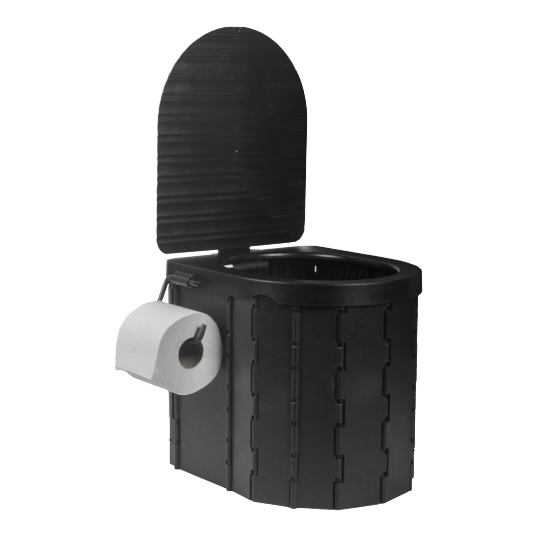 Mobile Toilette 25 l. Die mobile Campingtoilette für unterwegs ist schnell ausgeklappt und einsatzbereit – egal ob im Wald, beim Campen oder als eigenes Festival WC. Kann auch als Mülleimer oder Hocker verwendet werden. Material ABS-Kunststoff. Ausgestattet mit einem Deckel und einem Toilettenpapierhalter. Inklusive 12 Abfallbeutel und Aufbewahrungstasche. Volumen 25 l. Belastbarkeit 150 kg.
