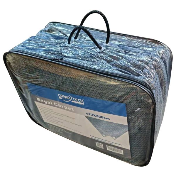 Die witterungsbeständige Oberfläche ist pflegeleicht, schnelltrocknend und für den Einsatz im Vorzelt ausgelegt. Dank passgenauer Form fügt sich der Teppich harmonisch ins Vorzelt ein und schafft eine wohnliche Atmosphäre.