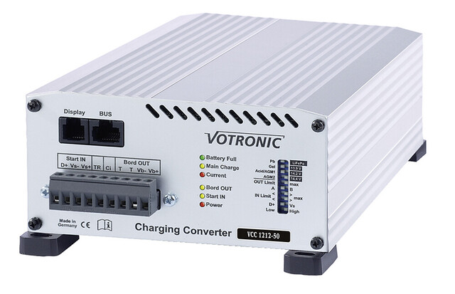 VOTRONIC Lade-Wandler, die die Bordbatterie schnell und batterieschonend gemäß den Vorgaben der Batterie-Hersteller laden. Selbst bei kurzen Fahrten wird Batterie mit vollem Ladestrom geladen.