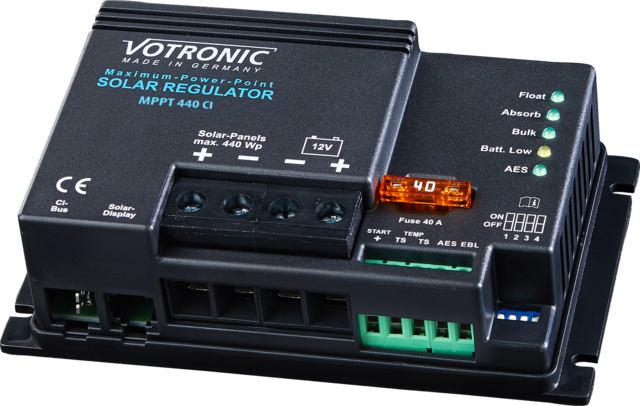 Die Solarregler von VOTRONIC mit MPPT (Maximum Power Point Tracking) Technologie zählen zur Spitzenklasse der Solar-Ladetechnik. Ein intelligenter Mikroprozessor ermittelt ständig den Maximum Power Point des Solarmoduls – also den Punkt mit der höchsten Leistungsausbeute. Der Spannungsüberschuss wird automatisch in zusätzlichen Ladestrom für die Batterie umgewandelt.
