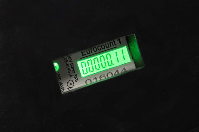 Stromzähler CEE 3-polig 230 V / 16 A, 2 x 1,5 m Leitung H07RN-F 3G2,5, MID geeicht, Schutzkontaktstecker und -kupplung, verplombt, Material: Gummi.