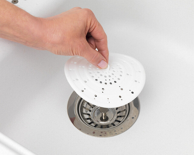 Einfach über den Abfluss legen und alle Überreste bleiben im Sieb hängen.