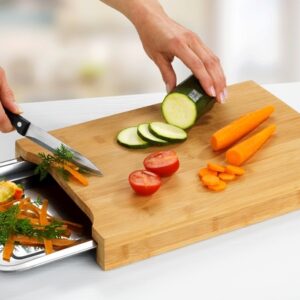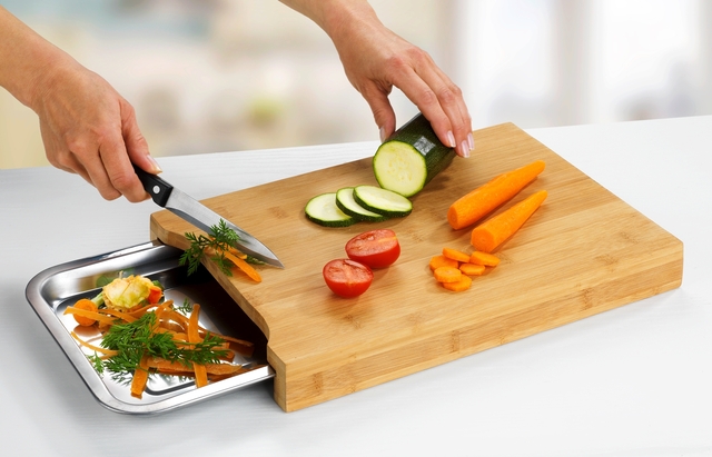 WENKO Bambus-Schneidebrett mit Edelstahlschale