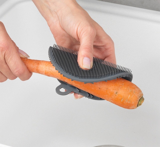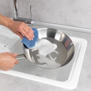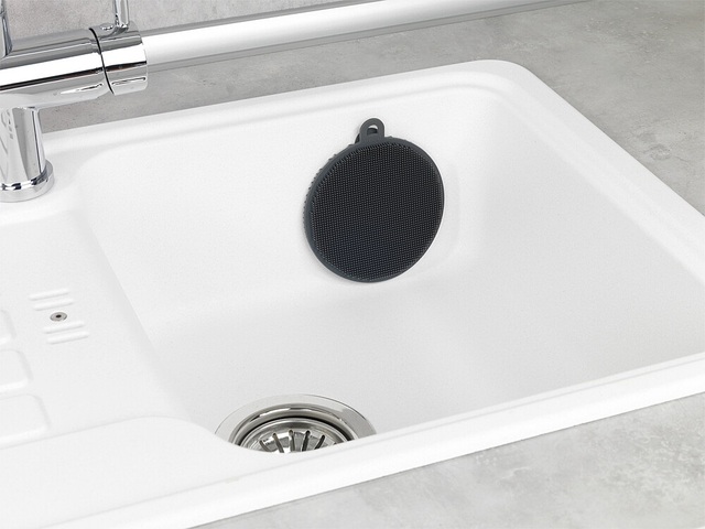 Ideal für empfindliche Oberflächen. Mit feiner Noppenstruktur für leichte Verschmutzungen und fester Seite für hartnäckige Rückstände. Mit Aufhängeöse und Saugnapf. Besonders hygienisch durch einfache Reinigung.