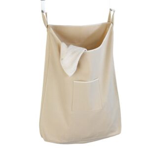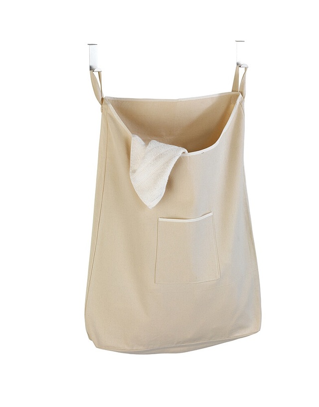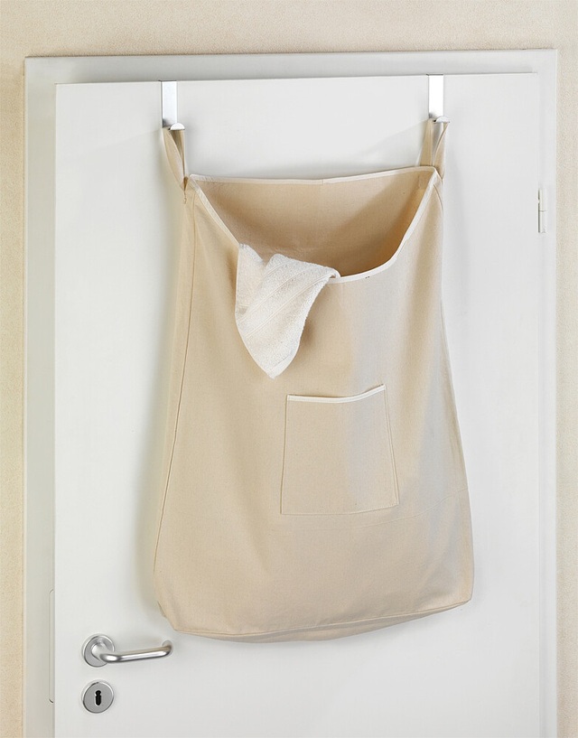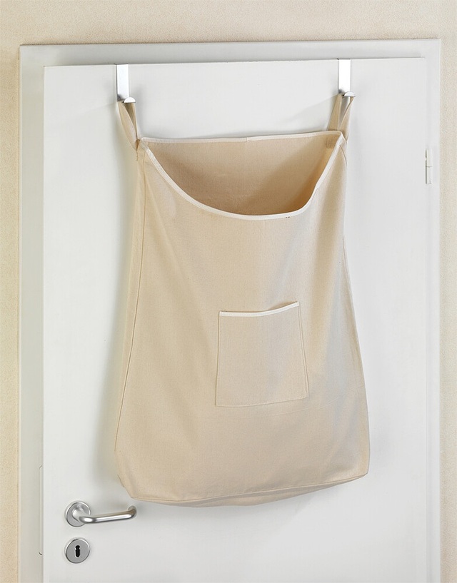 Praktischer und platzsparender Wäschesack aus strapazierfähigem Material mit zwei Haken zum Aufhängen in die Türfalz (2 und 4 cm). Der Reißverschluss am Boden ermöglicht ein einfaches Entnehmen der Wäsche.