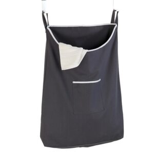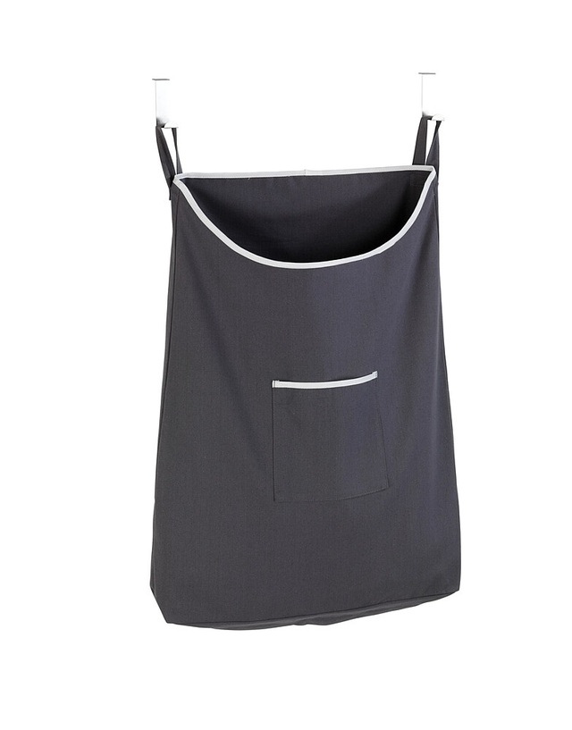 Praktischer und platzsparender Wäschesack aus strapazierfähigem Material mit zwei Haken zum Aufhängen in die Türfalz (2 und 4 cm). Der Reißverschluss am Boden ermöglicht ein einfaches Entnehmen der Wäsche.