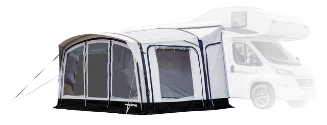Das Modell NEPTUNE 2.0 aus der WESTFIELD PREMIUM Serie ist speziell für alle Reisemobil entwickelt. Das Vorzelt muss mittels einer Schleuse mit dem Wohnmobil verbunden werden. Es stehen 4 verschiedene Schleusen zur Verfügung, um Anschlusshöhen zwischen 2,5 m bis 3,3 m zu erreichen. Durch das Ein-Kammer-Luftsystem lässt sich das Vorzelt noch einfacher und schneller aufbauen und durch den extra hohen Dachverlauf lassen sich die Fahrzeugtüren ohne Probleme öffnen und schließen. Einen weiteren besonderen Vorteil bietet die Drive-Away-Funktion, die es ermöglicht durch den Abbau der Schleuse das Vorzelt stehen zu lassen. Auch hier bieten die Panoramafenster ein angenehmes Raumgefühl.
