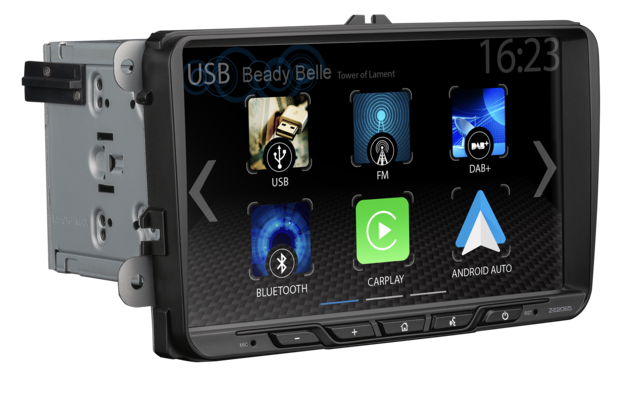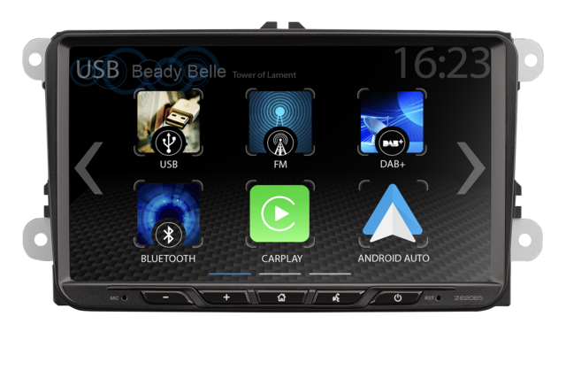 ZENEC E>GO Z-E2065 – Infotainer für VW, Seat, Skoda (Golf 5 + 6 Plattformen & T5/T6)*, Mediencenter mit 9″“ / 22,9 cm Touchscreen, Multimediasystem mit Apple CarPlay, Google Android Auto, DAB+. Dieses fahrzeugspezifische Multimediasystem von ZENEC ist optisch und technisch kompatibel mit diversen VW, Skoda und Seat Modellen. Via CAN-Bus mit der Fahrzeugelektronik vernetzt, integriert sich der Z-E2065 in die Bedienarchitektur – die Anzeigen von MFA/MFA+, OPS und Climatronic sowie das Multifunktionslenkrad sind für Sie dadurch wie gewohnt nutzbar. Auch ab Werk verbaute Aktiv- Soundsysteme werden unterstützt. Der Z-E2065 ist ein top ausgestattetes Media Center mit DAB+ Twin Tuner, Bluetooth für Freisprechen und A2DP Musikstreaming, zwei USB-Anschlüssen zur Audio- und Videowiedergabe, 4 x 50 Watt Verstärker, HDMI Eingang und Kamera Eingang. Der Phase Diversity UKW Triple Tuner mit dynamischer Senderliste ist für VAG Diversity Antennenanlagen entwickelt und nutzt die Signale von beiden FM Antennen, um jederzeit besten Empfang zu ermöglichen – auch unter schlechten Empfangsbedingungen. Verbinden Sie Ihr Smartphone via USB mit dem Media Receiver oder pairen Sie es per WiFi – der Z-E2065 unterstützt dann Wireless Apple CarPlay und Wireless Google Android Auto. Navigieren, Telefonieren, Nachrichten senden und empfangen, Musik hören – alle Funktionen steuern Sie bequem per Siri, den Google Sprachassistenten oder über das Display des Infotainers. Der kapazitive 9″“/22,9 cm LCD-TFT Touchscreen aus Echtglas überzeugt mit hoher Farbbrillianz, Leuchtkraft und Kontrastreichtum. Der Z-E2065 ermöglicht Ihnen ein umfassendes Soundtuning über seine per DSP-IC erweiterten Audioeinstellungen. Die Optimierung der Stereo-Abbildung per 5-Kanal Laufzeitkorrektur und die Begradigung des Cockpit-Frequenzgangs über den graphischen 16-Band Equalizer sind ein grosses Plus. Der Z-E2065 verfügt ebenfalls über eine DSP-basierte aktive Frequenzweiche mit wählbaren 12 dB und 24 dB/Okt. Flankensteilheiten.