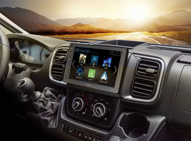 Innovative Multimediafunktionen, inklusive Wireless Apple CarPlay und Wireless Android AutoTM: Der Z-E3771 ist gezielt entwickelt für den Fiat Ducato III ab Serie 8 und baugleiche Modelle. In Verbindung mit dem optional erhältlichen Montagekit N-XFDUC-1D8 (Movera-Artikel-Nr. 9975802) passt sich der Infotainer perfekt in das Cockpit ein und lässt sich bequem über die Sensortasten und seinen kapazitiven 9″“/22,9 cm Touchscreen mit Glasoberfläche bedienen. Dank der Einstellmechanik lassen sich der vertikale Neigungswinkel und die vertikale Displayhöhe optimal auf den Nutzer anpassen. Der Z-E3771 überzeugt mit seiner besonders einfachen und sicheren Smartphone-Nutzung über Wireless Apple CarPlay und Wireless Android AutoTM: Telefonieren, Navigieren oder Musik und Podcasts hören werden zum Kinderspiel, da sich alle unterstützten Apps und Funktionen über Apple Siri oder den Google Sprachassistenten per Sprachbefehlen steuern lassen. Auch die direkte Gerätebedienung gibt keine Rätsel auf: Alle Funktionen und Quellen können über das klassische edienkonzept mit App-Icons auf dem Hauptbildschirm intuitiv gesteuert werden. Ein integrierter DAB+ Tuner ermöglicht entspannten mobilen Digitalradio-Empfang in höchster Qualität. Das moderne DAB+ Modul punktet durch einfache Bedienbarkeit und Funktionsvielfalt: DAB-DAB Seamless-Following, DLS-Text, MOT-Slideshow sowie Comfort Scan. Neben einem UKW-RDS Tuner verfügt der Z-E3771 über zwei USB 2.0 Ports, die sich zur Wiedergabe von Audio- und Videodateien (USB1 und USB2) sowie auch zum Anschluss von Apple iOS und Android Smartphones (USB1) nutzen lassen. Das Bluetooth Freisprechmodul überzeugt mit seiner guten Sprachqualität. Der Import von bis zu 1000 Telefonbuchkontakten mit jeweils 3 Rufnummern und Suchfunktion gehören ebenso zu den Komfortfunktionen wie A2DP-Musikstreaming mit AVRCP Steuerung von Smartphones. Der Z-E3771 hat zwei Kamera-Eingänge (CVBS / AHD) mit geschalteter Stromversorgung und verfügt über eine automatische Rangier-/Umschaltfunktion, die durch Einlegen des Rückwärtsgangs getriggert wird. Zur besseren Distanzeinschätzung können Hilfslinien eingeblendet und eingestellt werden. Über die CAM Direktwahltaste an der Gerätefront lässt sich die Kamerafunktion auch manuell starten. Der Z-E3771 kann mit den ZENEC Multiview Kameras kombiniert werden und ermöglicht dadurch eine freie Auswahl von unterschiedlichen Bildausschnitten und Blickwinkeln am Touchscreen.